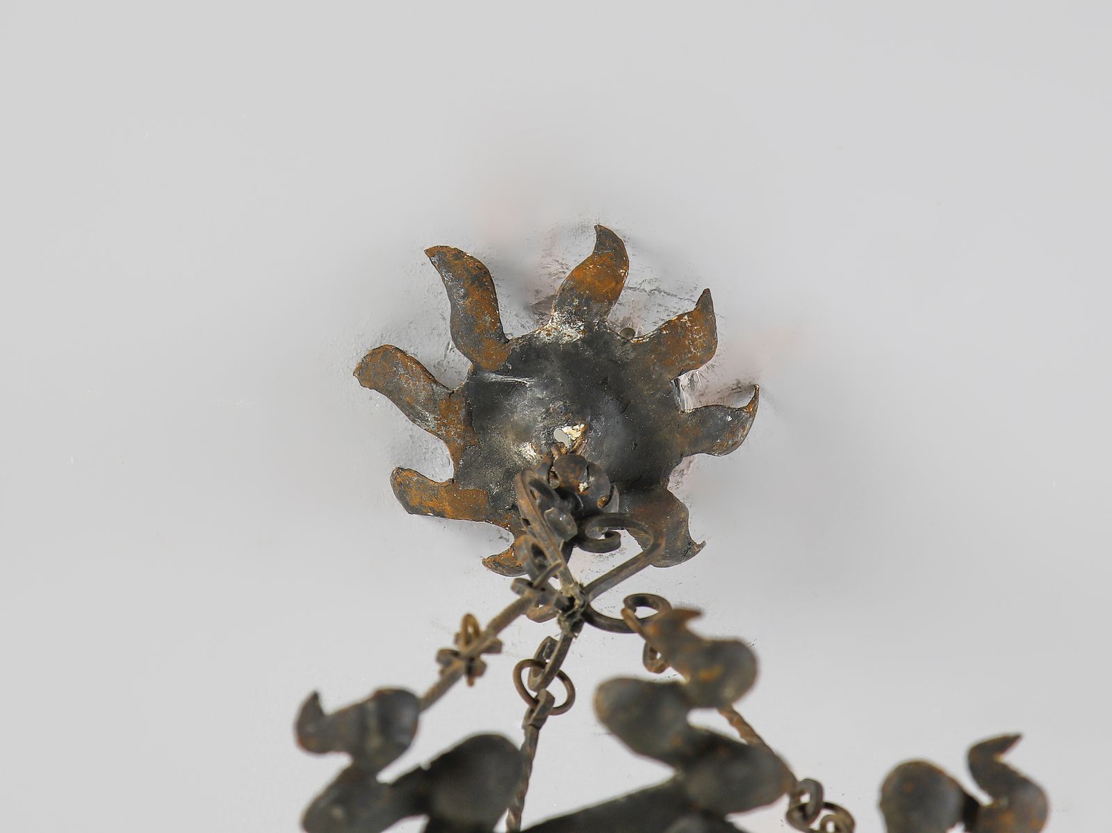 GHIRETTI CORNELIO (1891 - 1934) attribuito. Lampada a sospensione. Ferro battuto e vetro trasparente verdino.. Cm 67x32x32. Secolo XX.