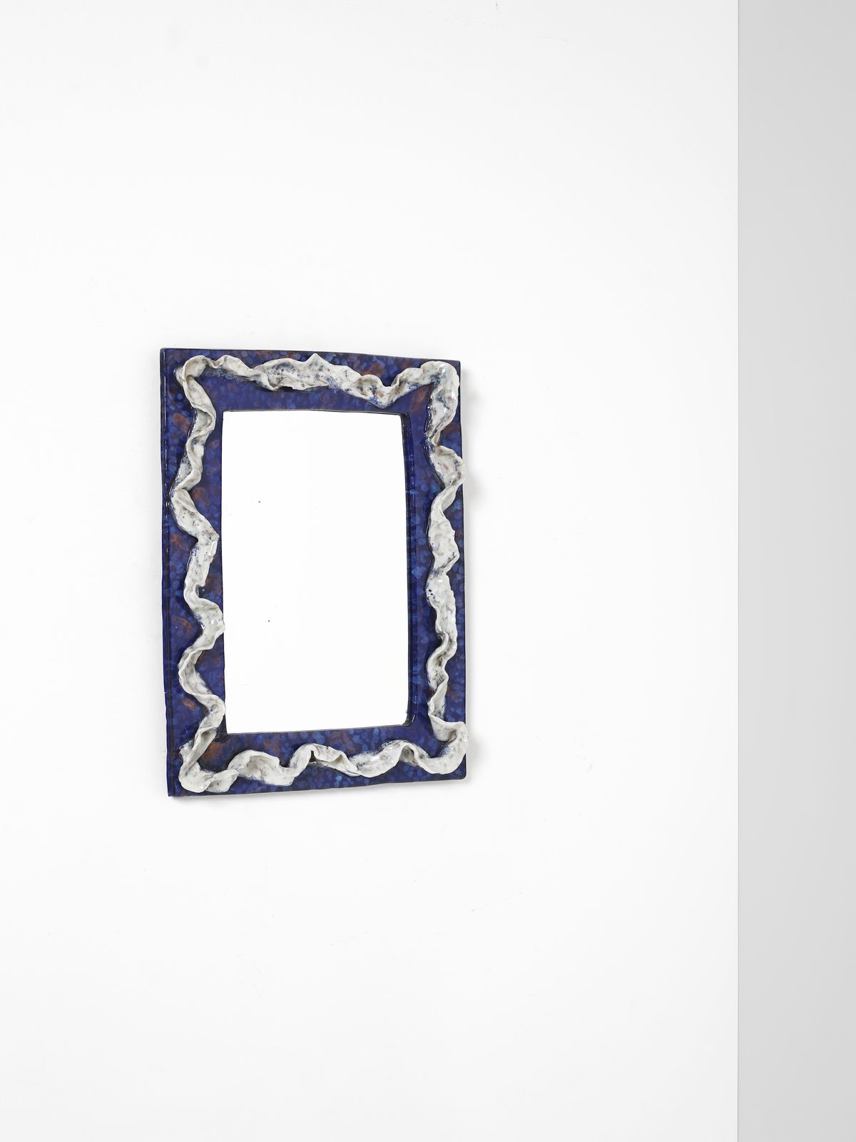 LA FARNESIANA attribuito. Specchio. Ceramica smaltata e specchio.. Cm 62x46x6. Anni Cinquanta.