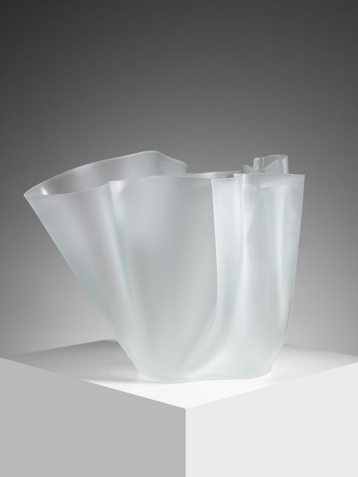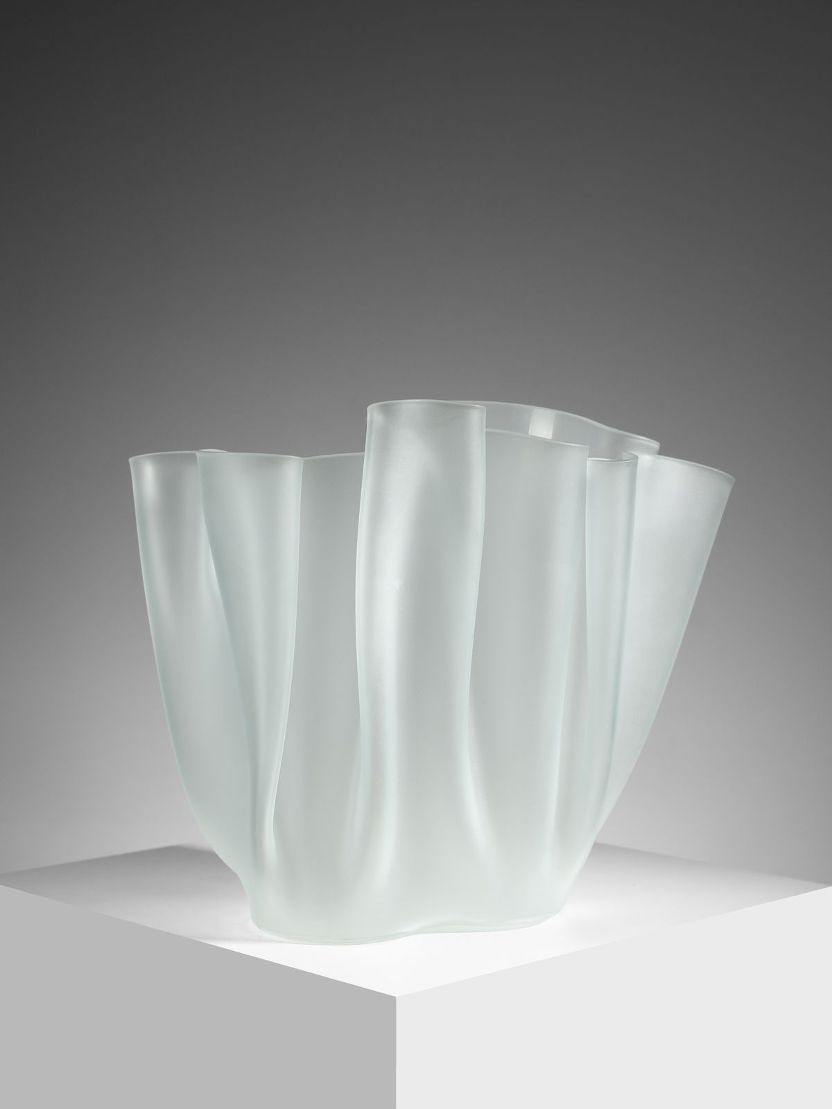 CHIESA PIETRO (1892 - 1948) attribuito. Vaso Cartoccio probabile produzione Fontana Arte, Milano. Vetro stampato.. Cm 28x38x38. Anni Settanta.