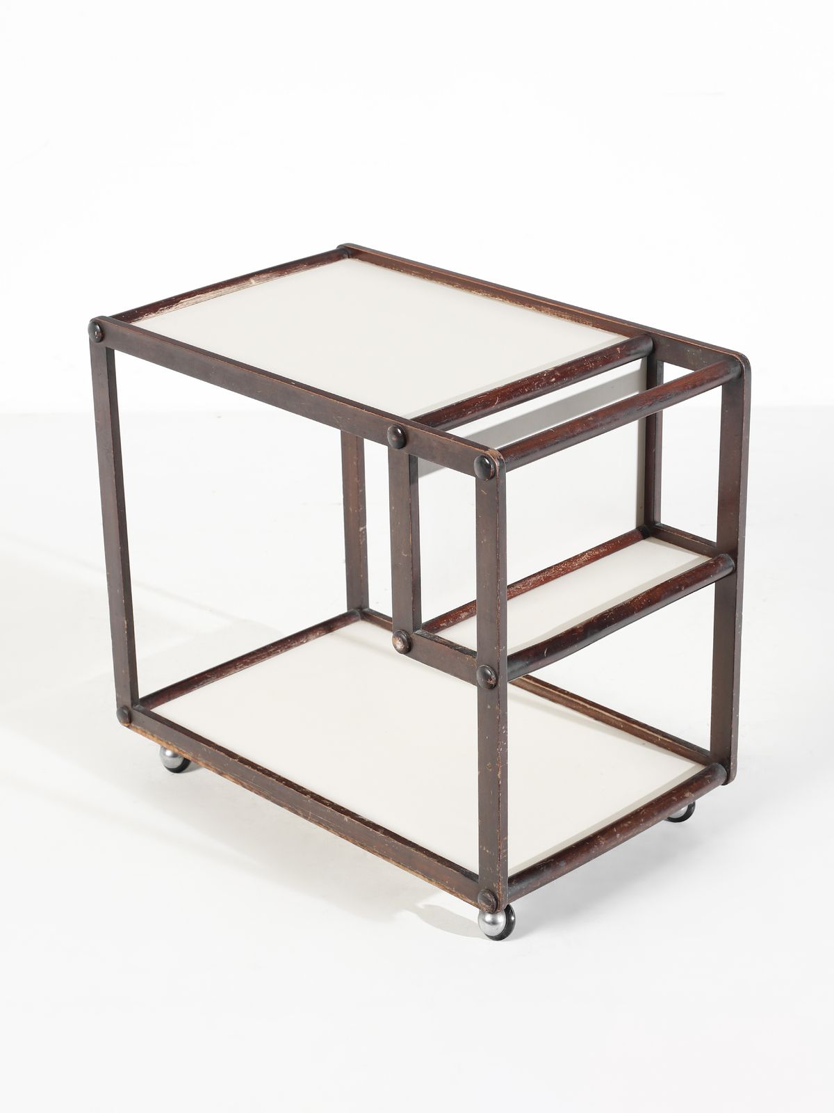 MANIFATTURA ITALIANA Carrello. Legno e laminato.. Cm 66x74x45. Anni Sessanta.