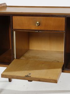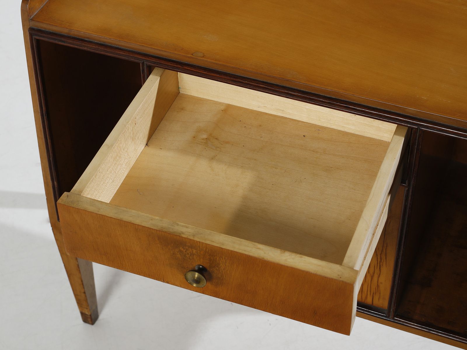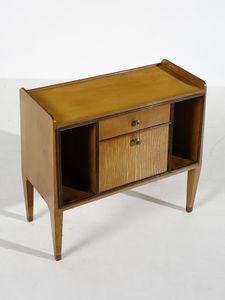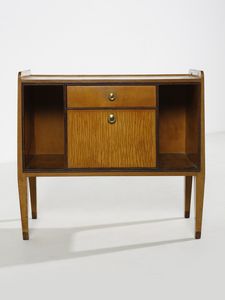 Comodino con cassettino, ribalta e scomparti laterali, esecuzione Serafino Arrighi, [..]