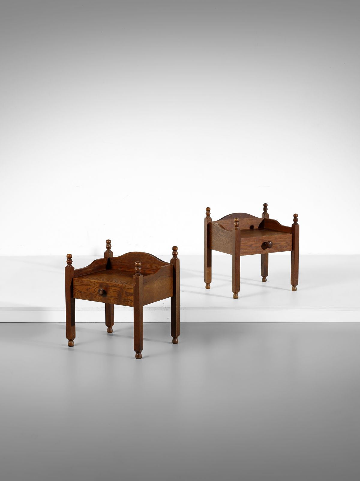 MANIFATTURA ITALIANA Coppia di comodini. Legno.. Cm 55x53x41. Secolo XX.