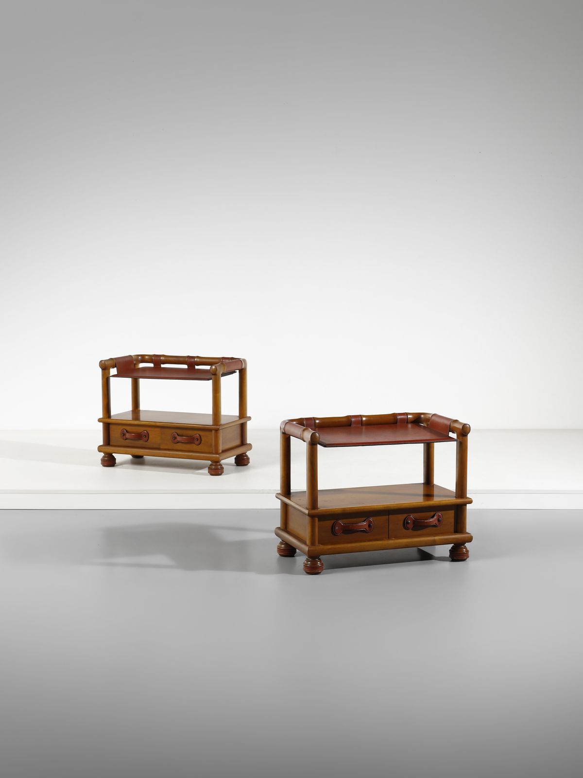 MANIFATTURA ITALIANA Coppia di comodini. Legno.. Cm 60x74x44. Anni Sessanta.