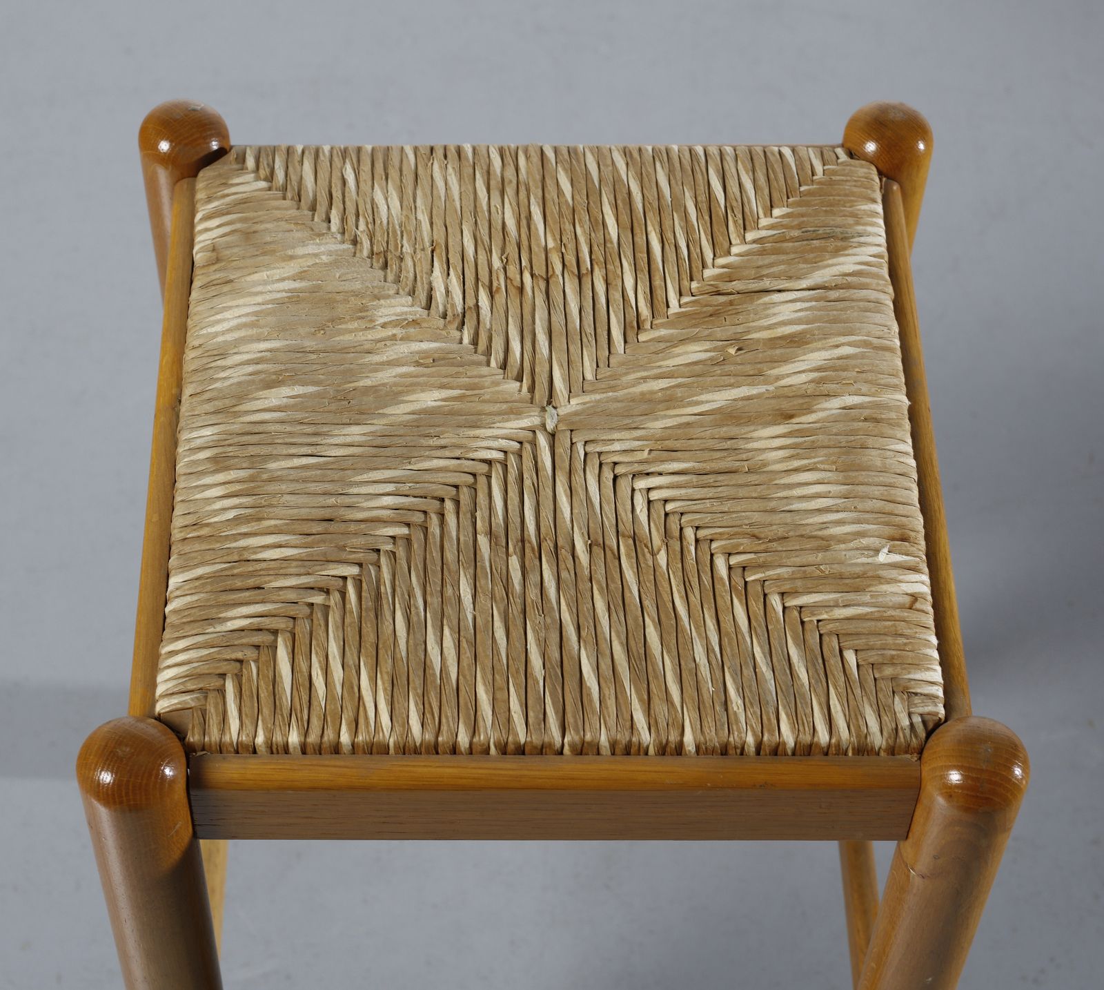 FRATELLI BOFFI Coppia di sgabelli, Italia. Legno e paglia.. Cm 64x38x38. Anni Sessanta.