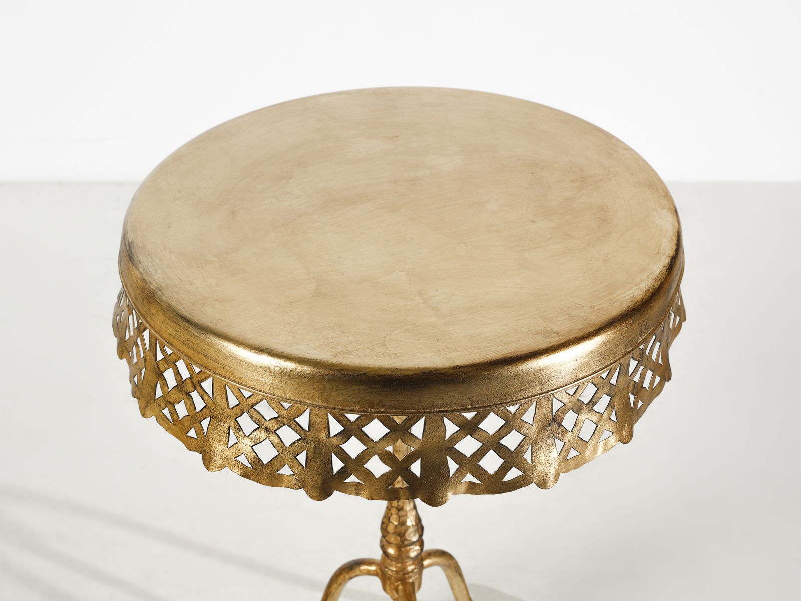 BANCI FIRENZE Coppia di tavolini. Metallo dorato.. Cm 63x50x50. Anni Ottanta.