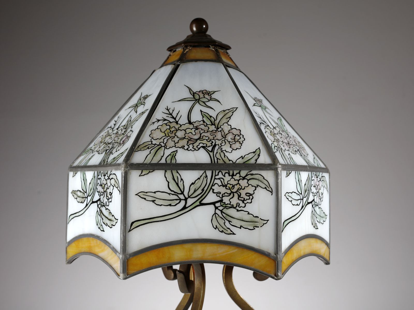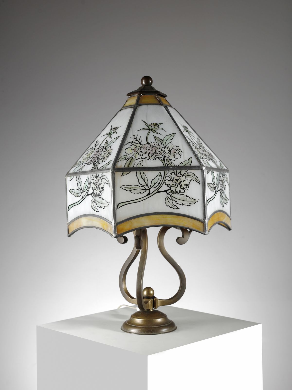 MANIFATTURA AUSTRIACA Lampada da tavolo. Ottone e vetro.. . Prima metà XX Secolo.