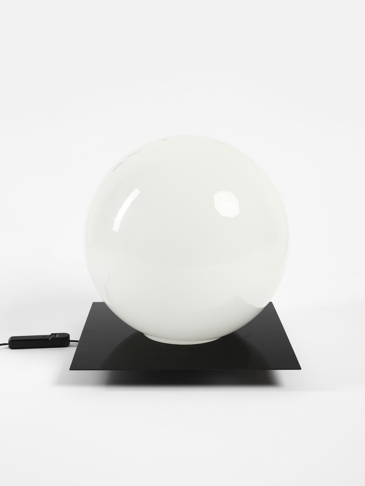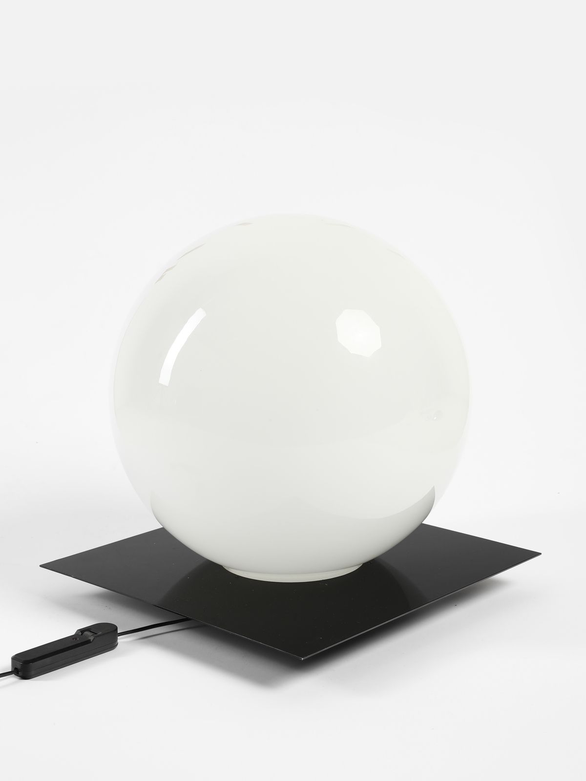 GRAMIGNA GIULIANA & MAZZA SERGIO Lampada da tavolo mod. Micol per Quattrifolio Design, Milano. 1971. Vetro opalino e metallo verniciato.. Cm 52x49x49. Bibliografia: Giuliana Gramigna, Repertorio 1950-2000, Allemandi, Torino, 2003, p. 197.