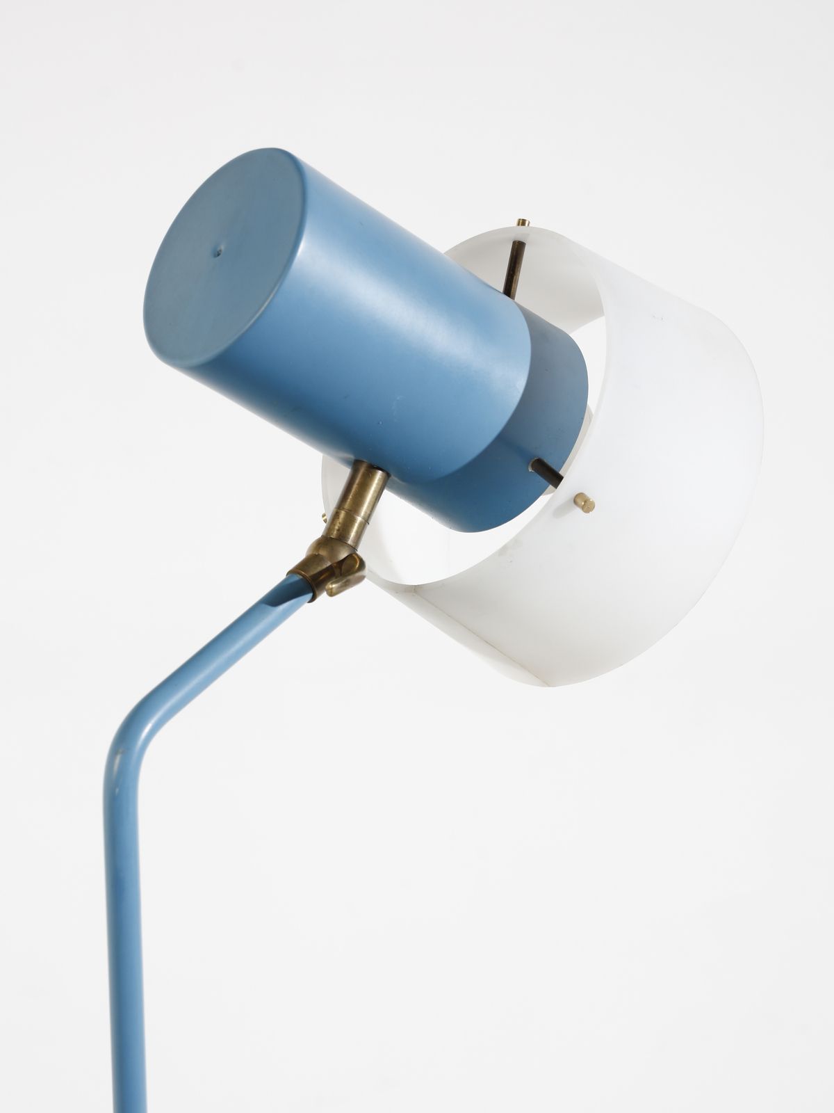 MANIFATTURA ITALIANA Lampada da terra. Metallo verniciato, ottone e vetro opalino.. Cm 145x40. Anni Cinquanta.