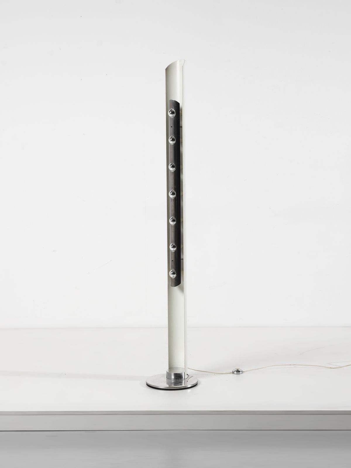 TRONCONI ENRICO Lampada da terra mod. Totem. Acciaio e metallo verniciato.. Cm 180x30x30. Anni Settanta.