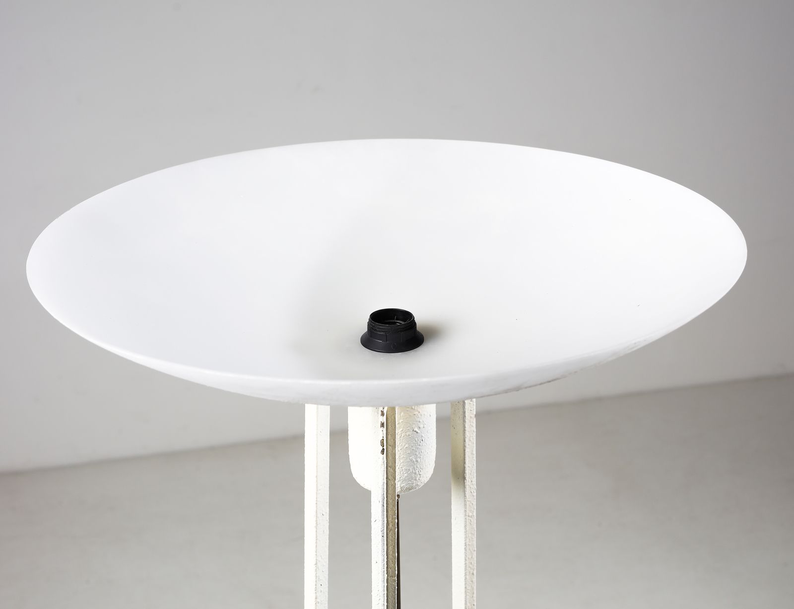 CECCHI MARZIO (1940 - 1990) Lampada da terra per Studio Most, Firenze. Metallo verniciato, ottone e vetro opalino acidato sulla superficie esterna.. Cm 180x40x40. Anni Settanta.Provenienza: locale notturno, Maremma.