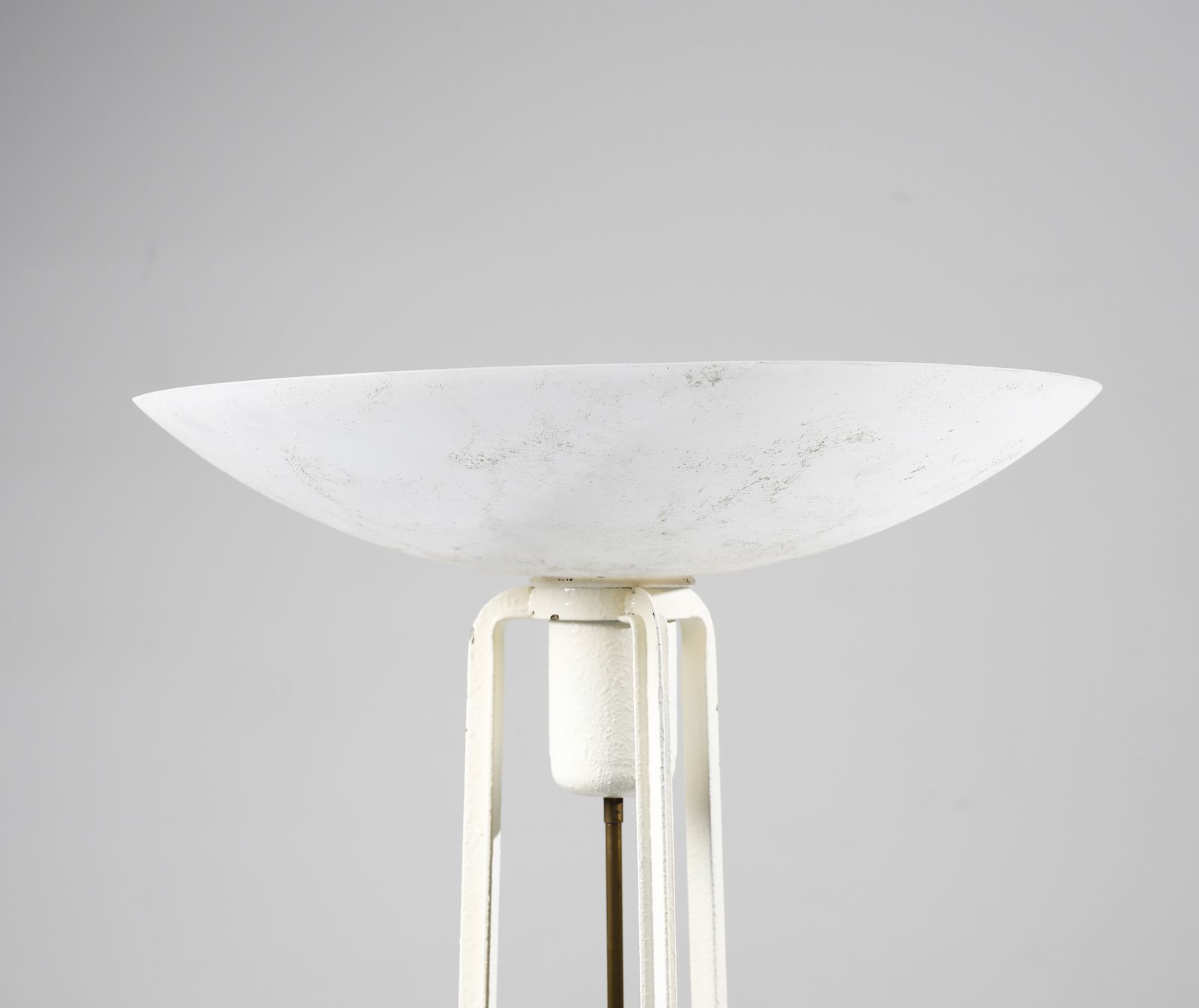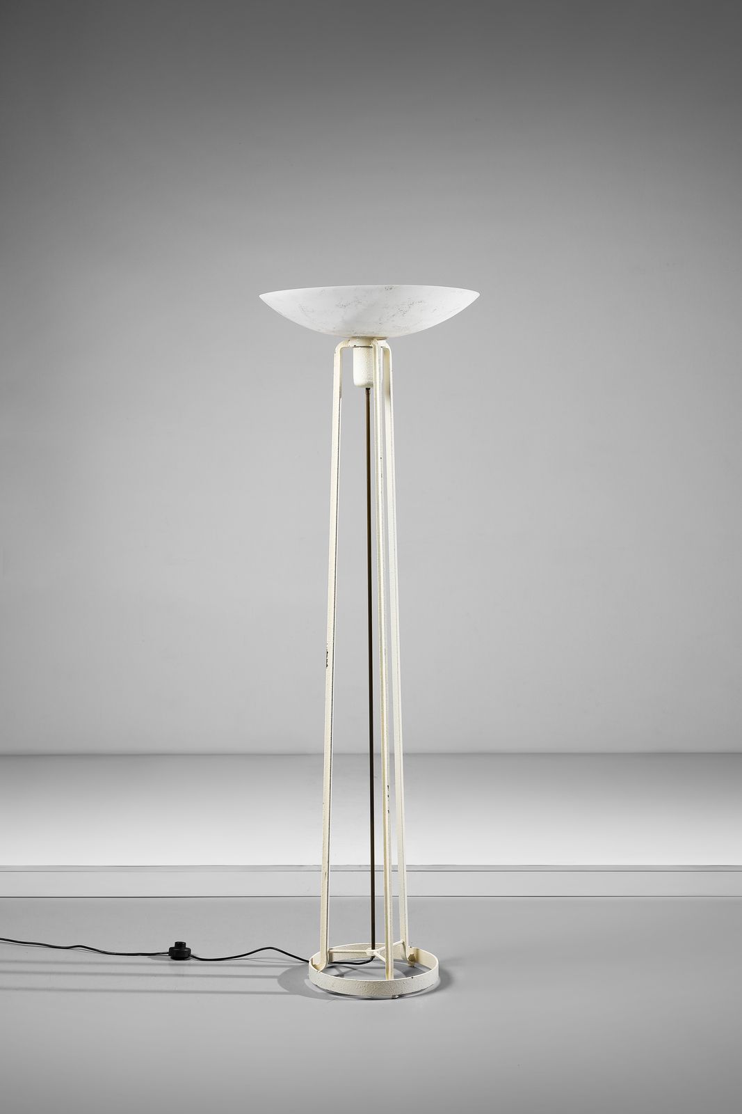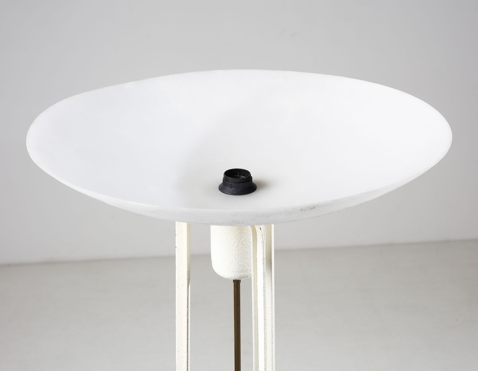 CECCHI MARZIO (1940 - 1990) Lampada da terra per Studio Most, Firenze. Metallo verniciato, ottone e vetro opalino acidato sulla superficie esterna.. Cm 180x40x40. Anni Settanta.Provenienza: locale notturno, Maremma.