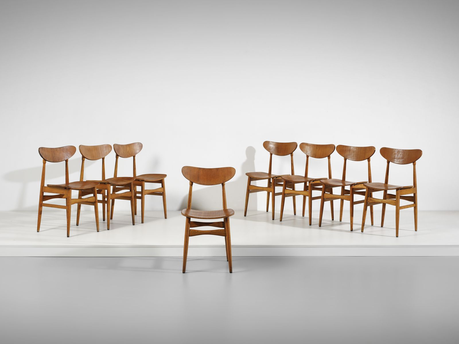 MANIFATTURA DANESE Otto sedie. Legno curvato.. Cm 80x44x47. Anni Sessanta.