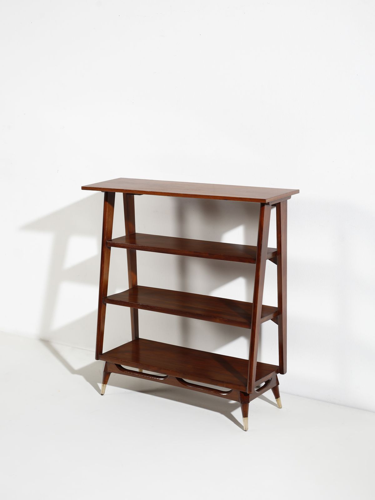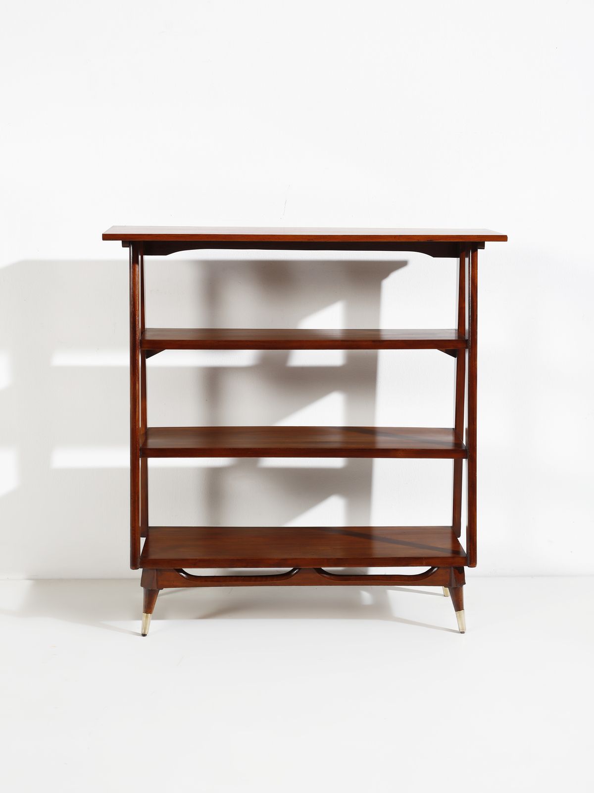 MANIFATTURA BRASILIANA Piccola libreria. Legno di ciliegio e ottone.. Cm 92x90x31. Anni Cinquanta.