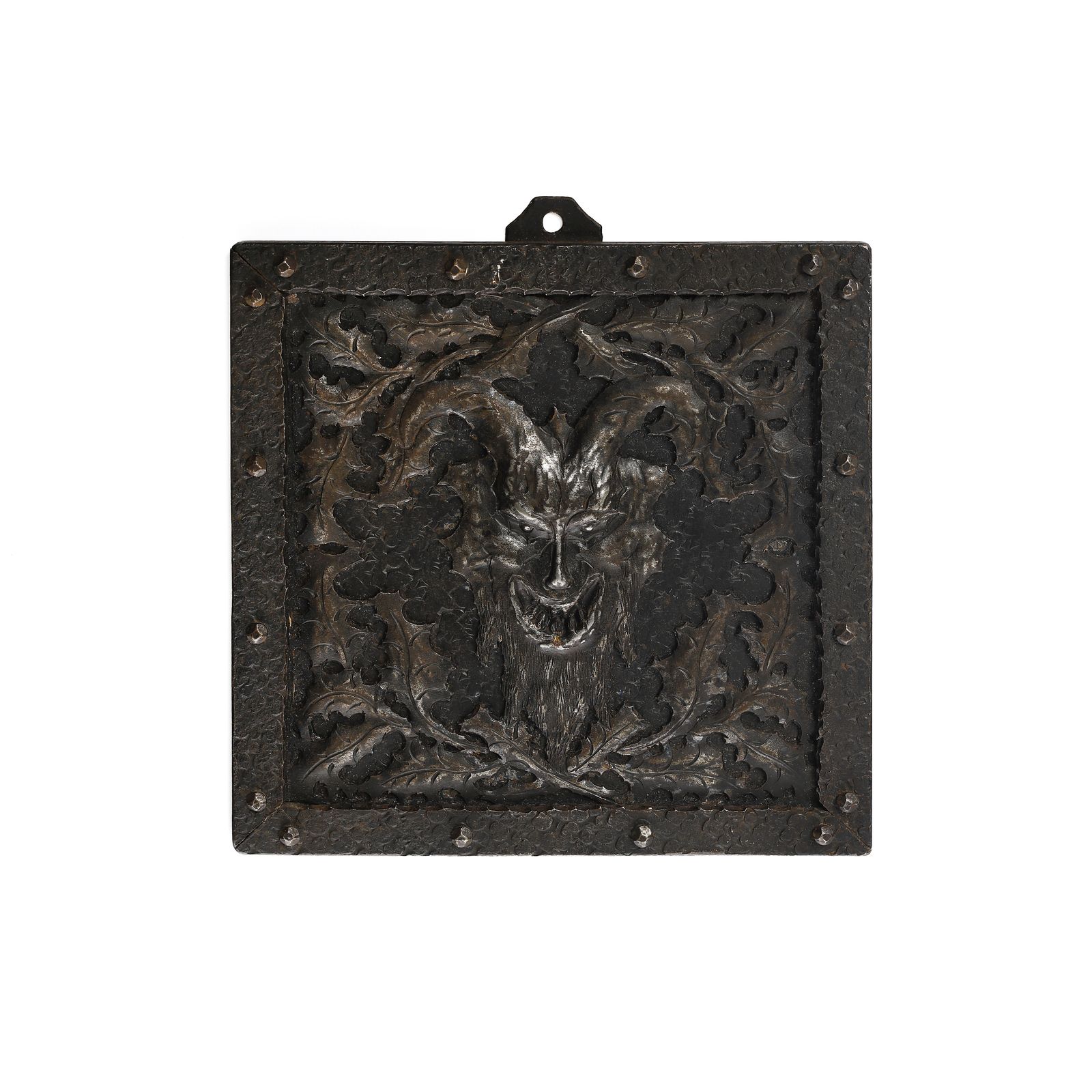 GHIRETTI CORNELIO (1891 - 1934) Placca raffigurante un satiro. Ferro battuto.. Cm 17,50x16. Anni Dieci / Venti.