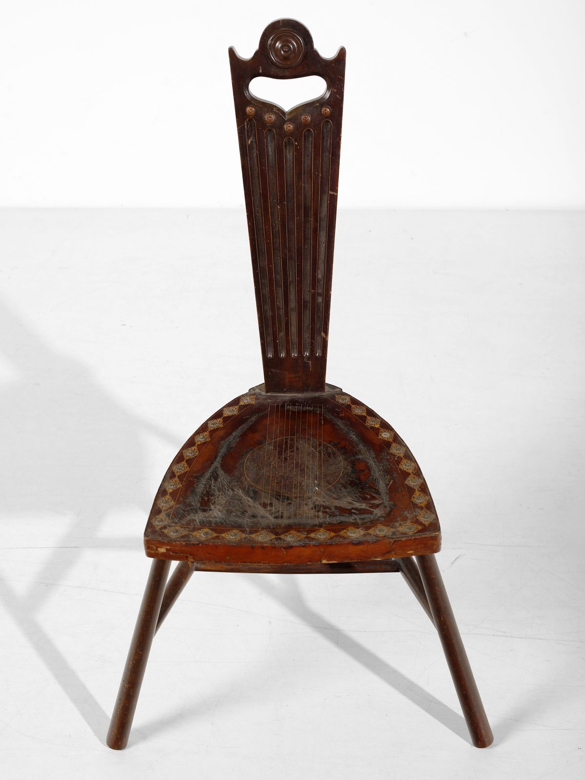 DRESSER CHRISTOPHER (1834 - 1904) scuola di. Sedia Art & Crafts. Legno con inserti in metallo.. Cm 87x53x47. Inizi secolo XX.