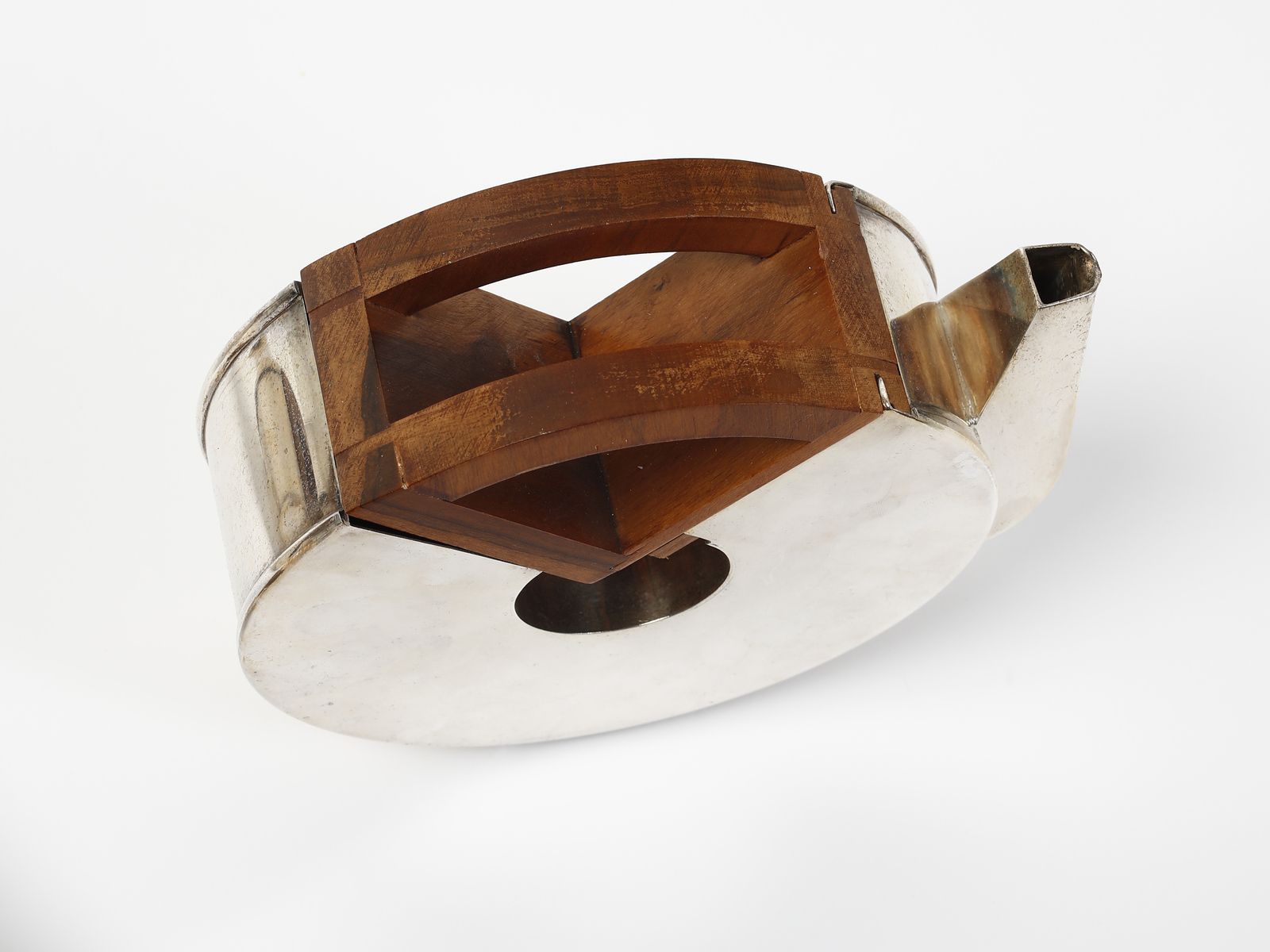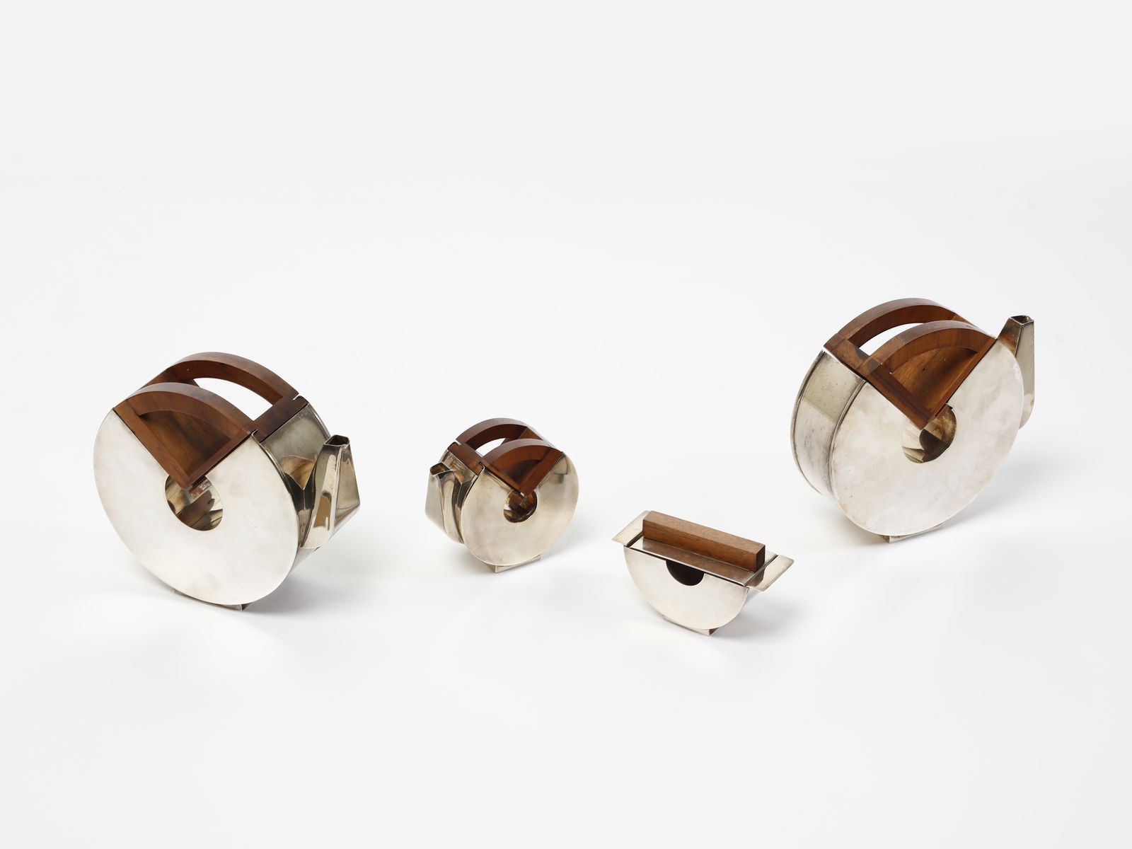 MANIFATTURA ITALIANA Servizio da te. Metallo argentato e legno.. . Anni Trenta.