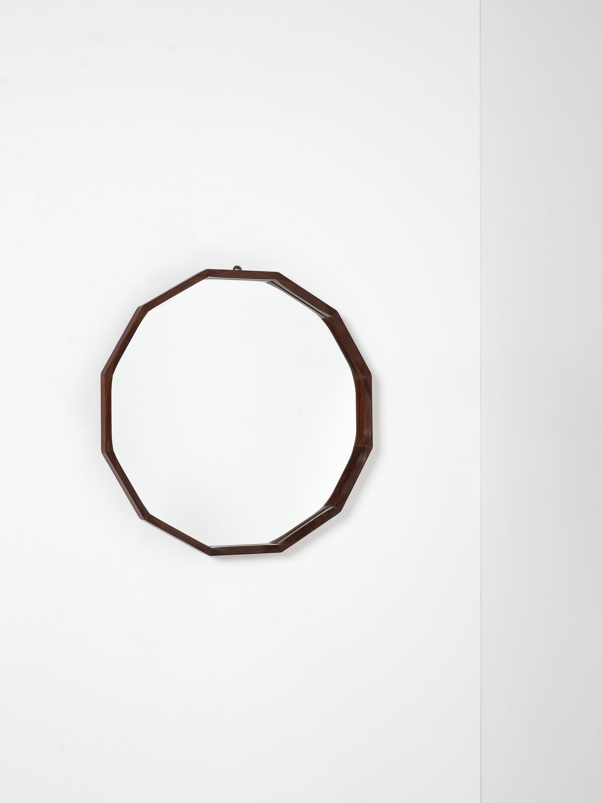 MANIFATTURA ITALIANA Specchio. Legno di teak e specchio.. Cm 61x61x4. Anni Sessanta.