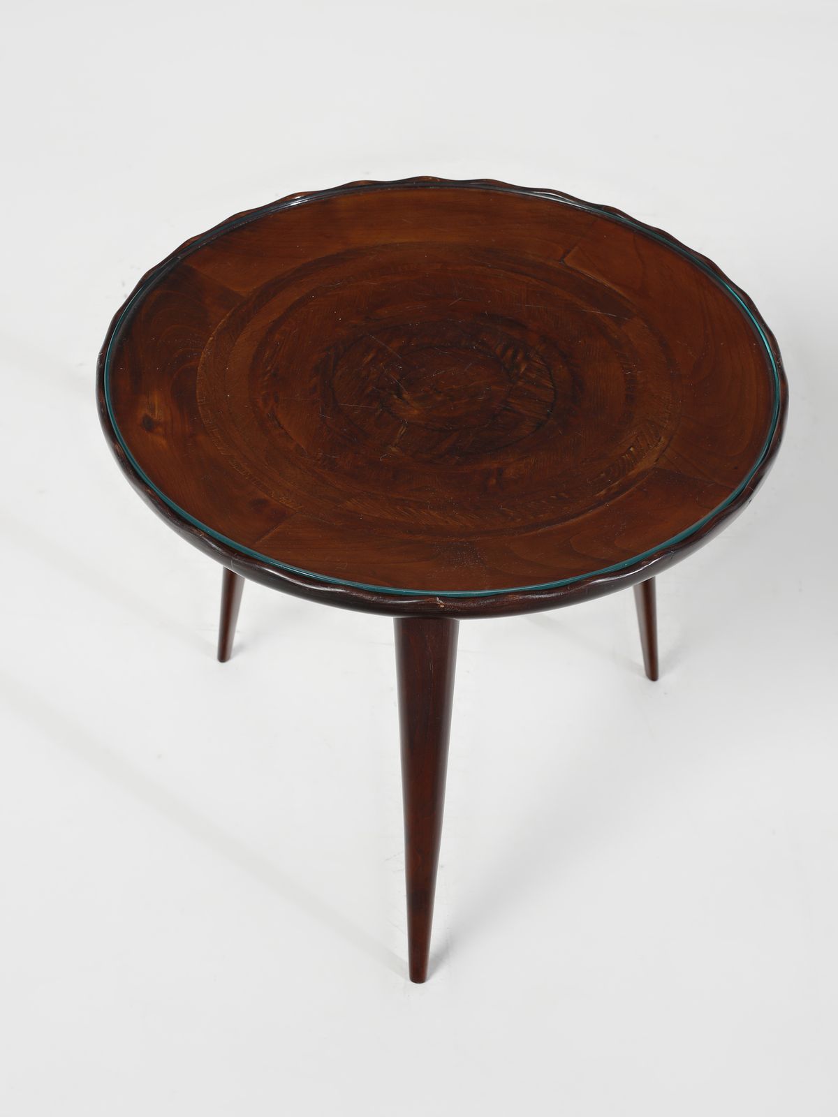 MANIFATTURA ITALIANA Tavolino da salotto. Legno di mogano e vetro.. Cm 46x52x52. Anni Cinquanta.