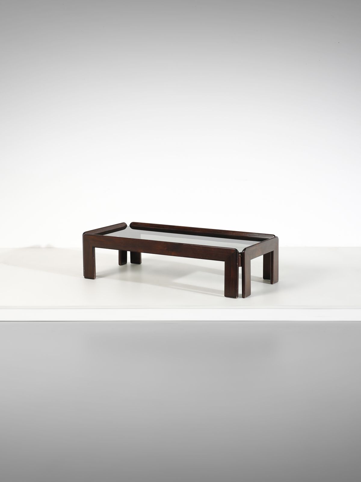 SCARPA AFRA (1937-2011) & TOBIA (n. 1935) Tavolino da salotto per Cassina. Legno e vetro.. Cm 34x134x63. Anni Settanta.