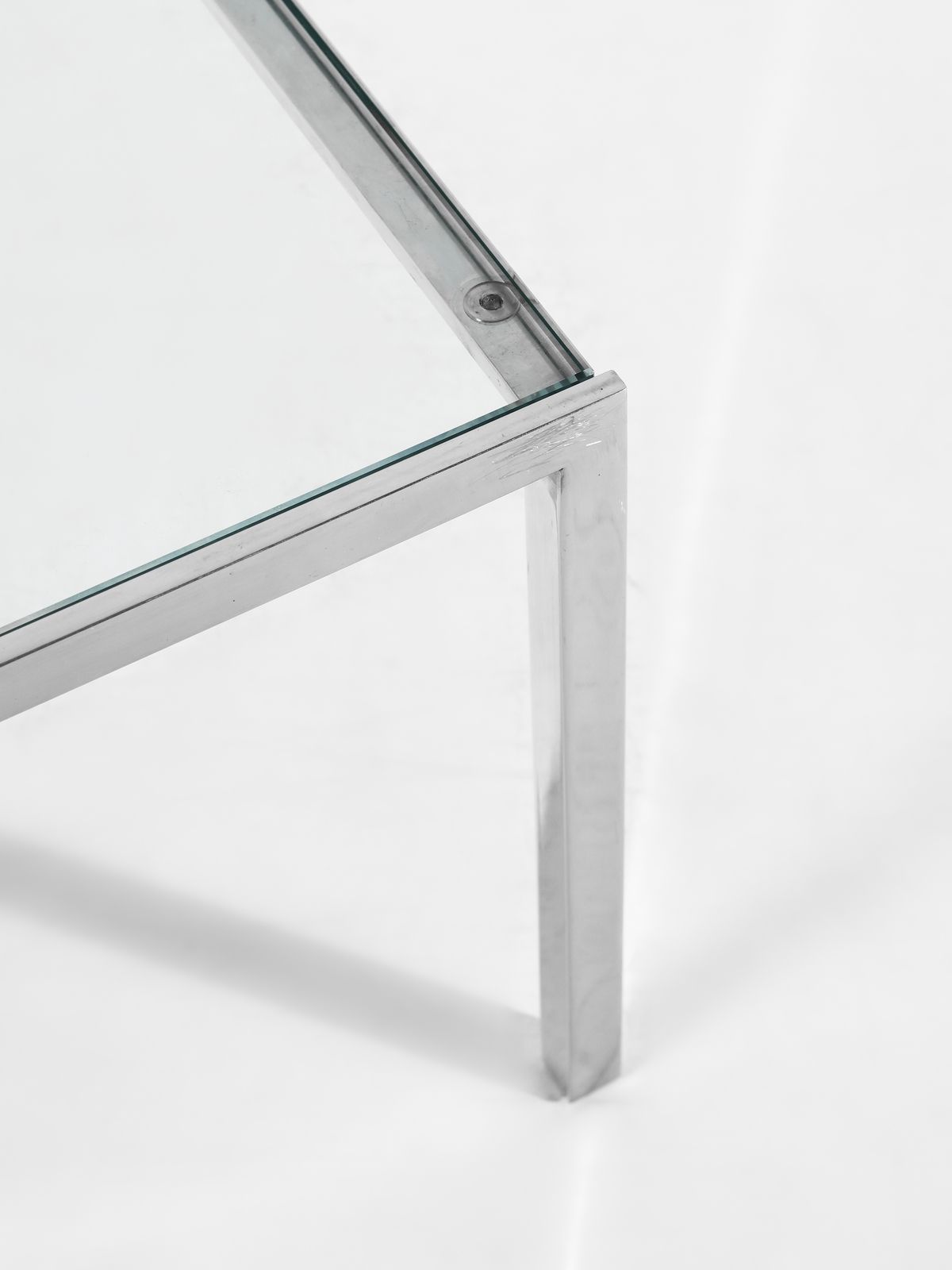 KNOLL BASSETT FLORENCE (1917 - 2019) Tavolino da salotto per Knoll. Metallo cromato e vetro.. Cm 42x100x100. Anni Sessanta.