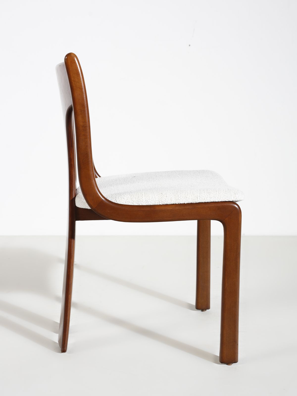 MANIFATTURA ITALIANA Tre sedie. Legno multistrato e tessuto imbottito. Cm 79x45x45. Anni Settanta.