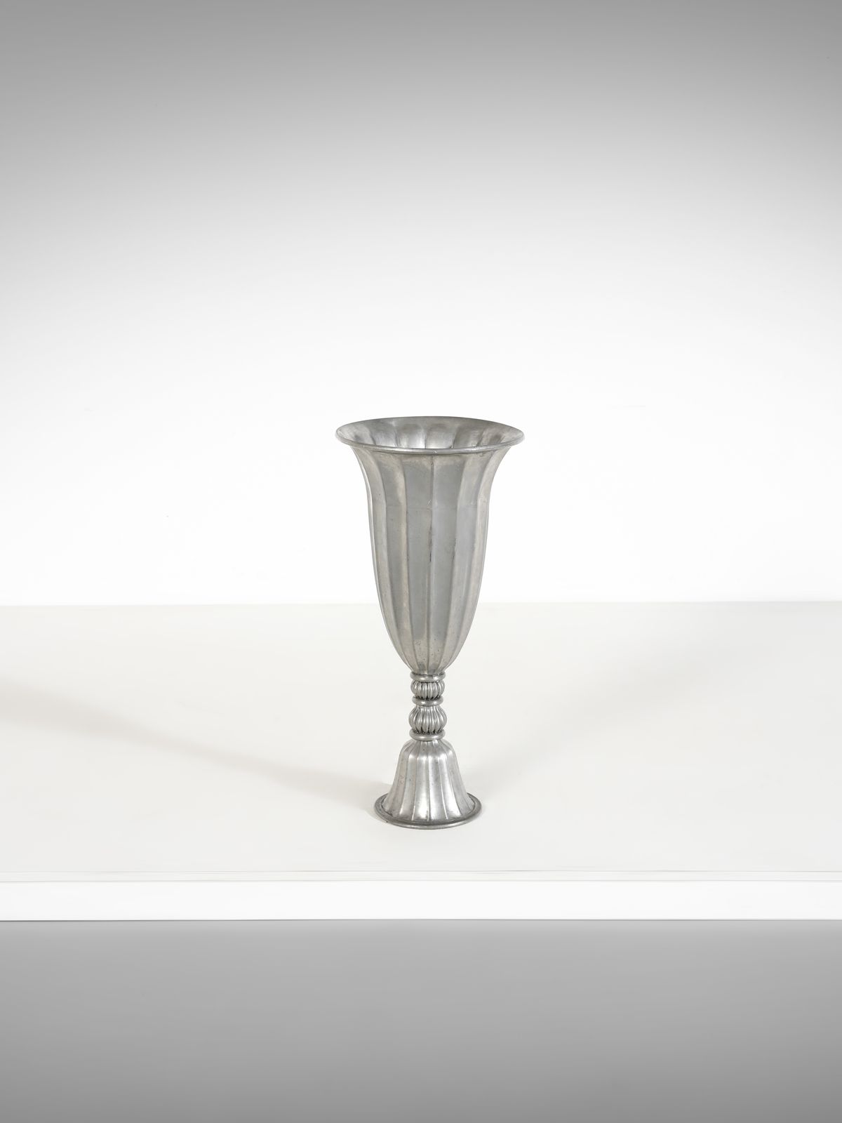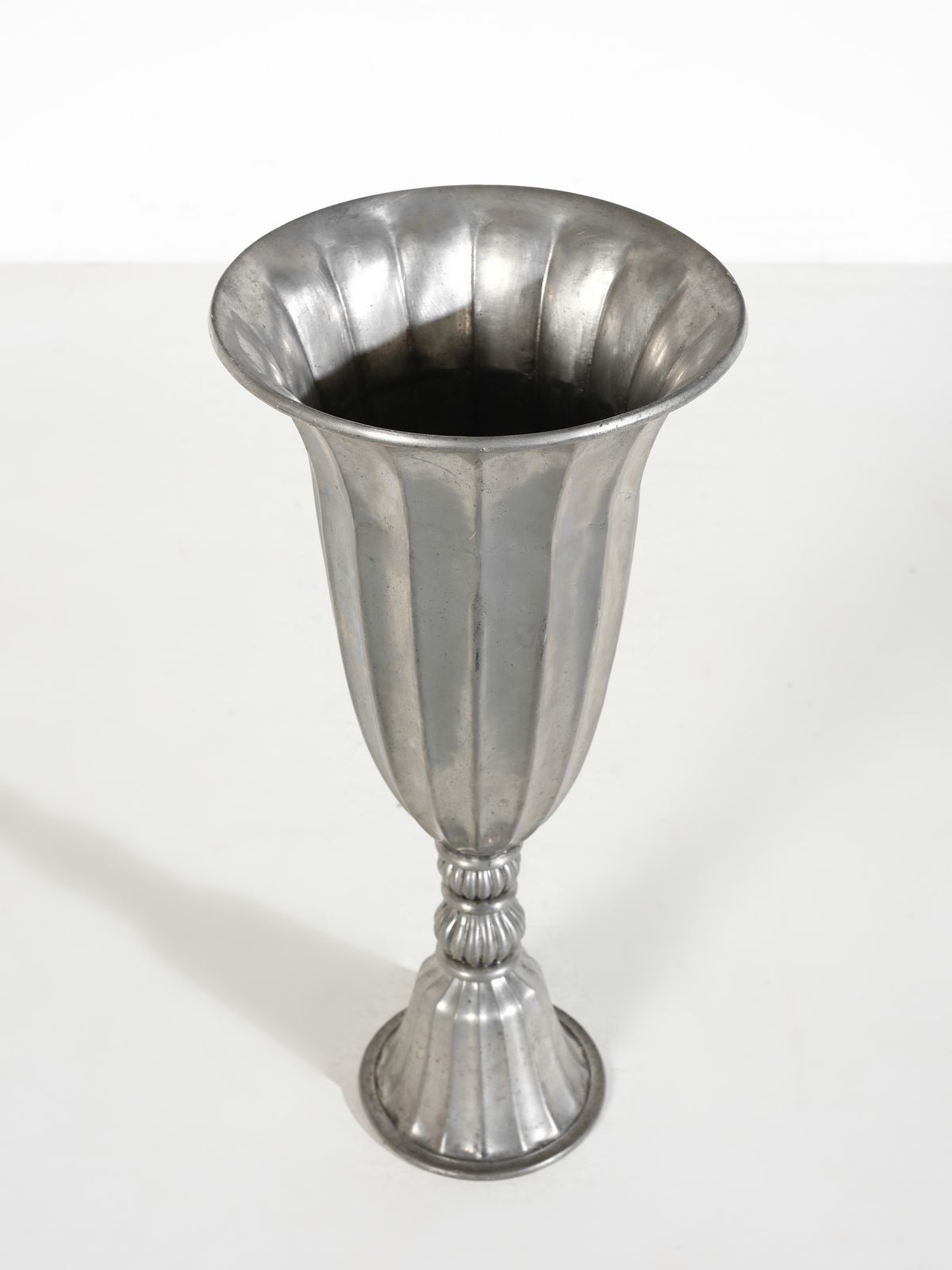 FIGURA PIERO Vaso per Atena. Peltro.. Cm 81x31. Marchio alla base.Anni Sessanta.
