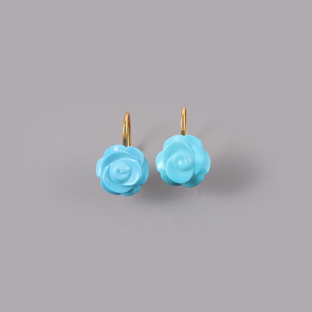 con rose in pasta di turchese montate in oro rosa, gr. 4,8.