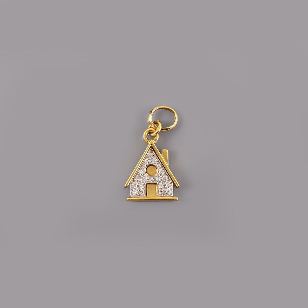 in oro giallo e bianco a guisa di casetta con pavé di diamanti, gr. 5. Dimensioni 2 x 1,5 cm ca.