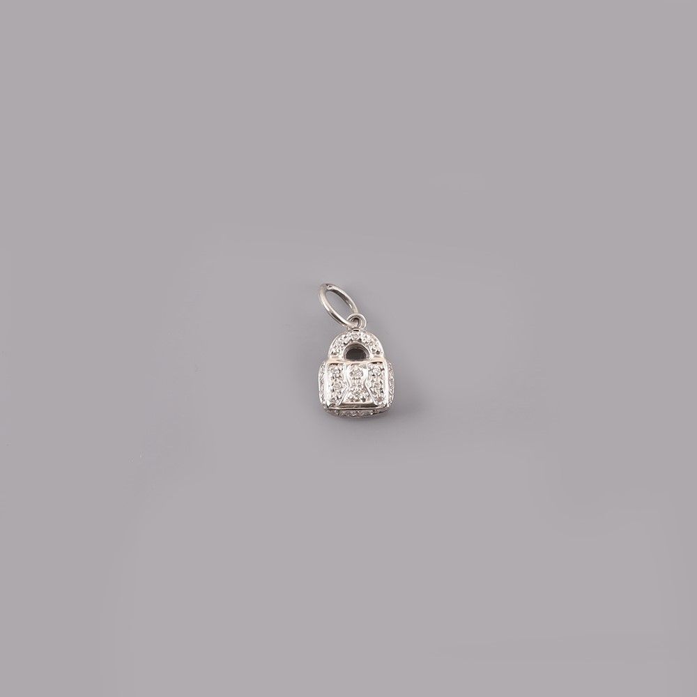 a guisa di lucchetto in oro bianco e brillanti, gr. 2,3. Dimensioni 1,3 x 1 cm ca.