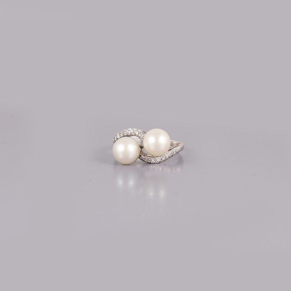 contrarié in oro bianco con due perle coltivate e piccoli diamanti, gr. 4,6. Misura 15