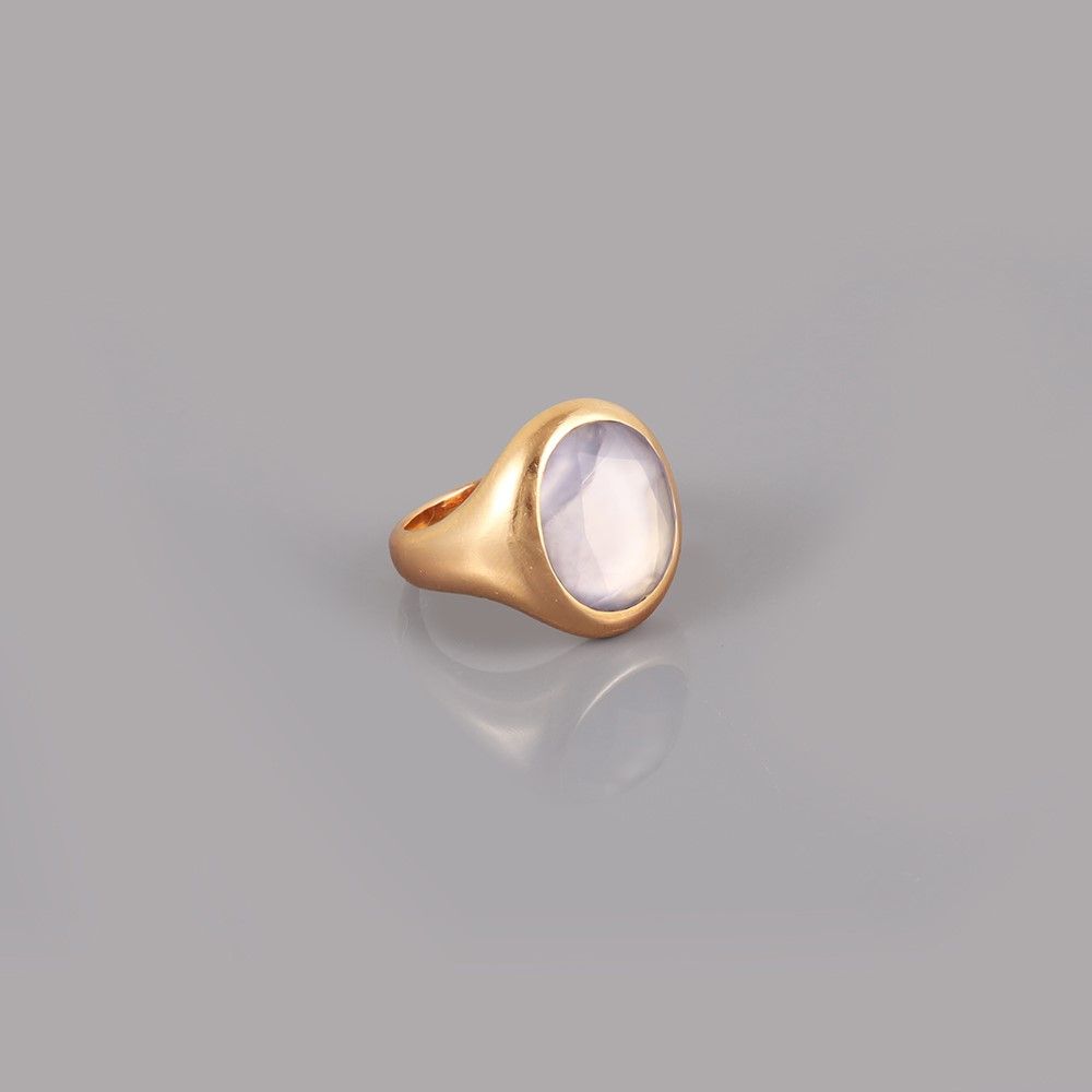 in oro rosa a fascia con calcedonio ovale sfaccettato, gr. 12,4. Misura 8,5