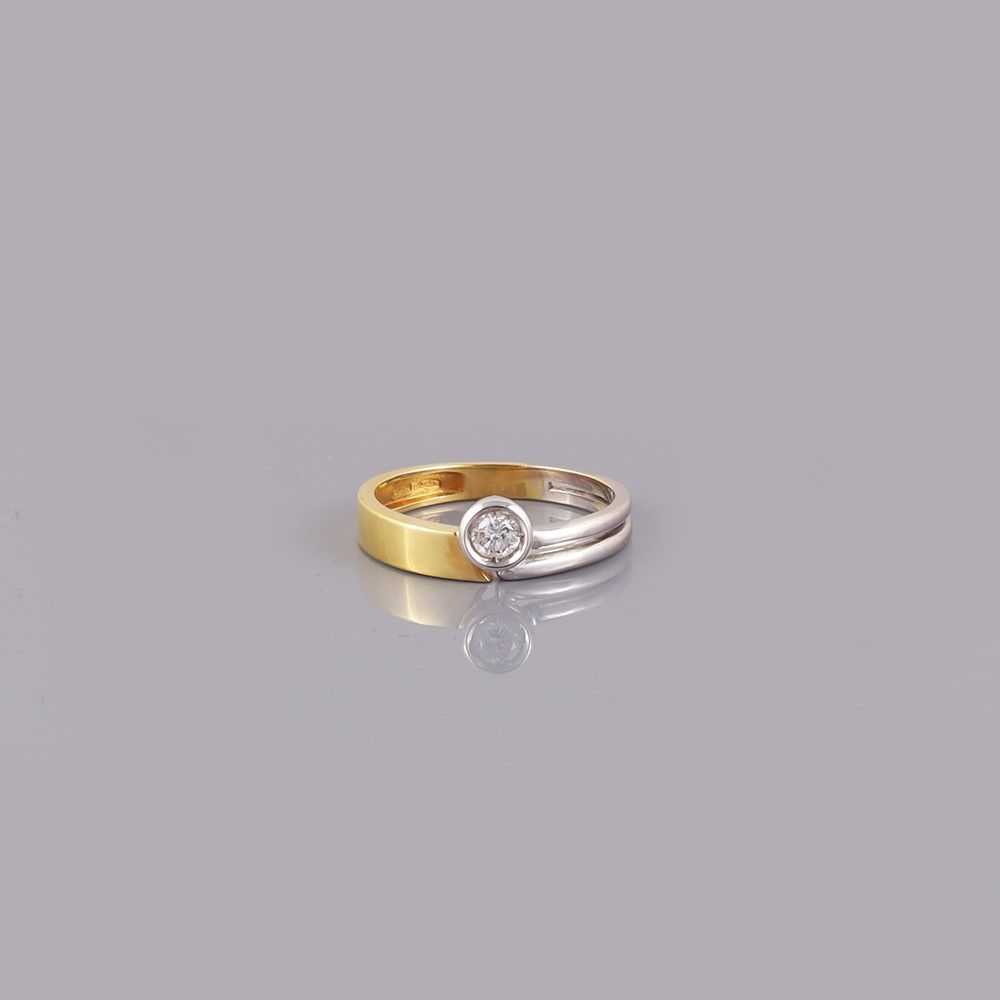 in oro giallo e bianco con brillante posto al centro, gr. 4. Misura 18