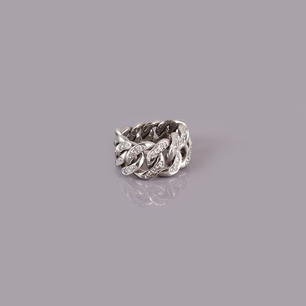 in oro bianco a morbida catena con maglie groumettes poste in gradazione, ornato da diamanti, gr. 8,4.Misura 10