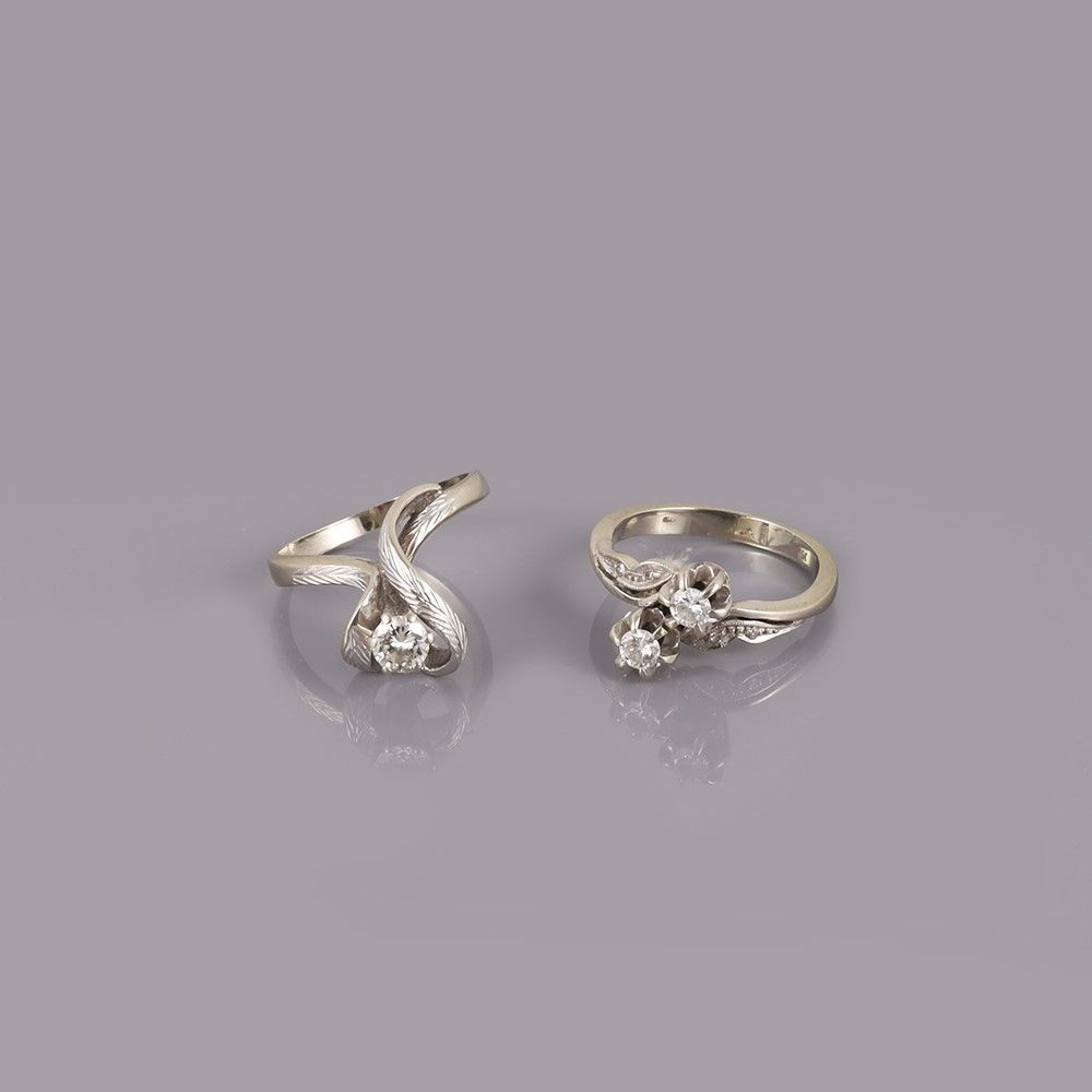 in oro bianco con brillanti, gr. complessivi 9,5. Misura 14 e 15