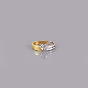 in oro giallo e bianco con brillante posto al centro, gr. 4. Misura 18