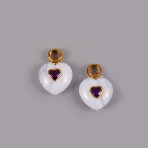 in oro giallo ciascuno con cuore di calcedonio centrato da un'ametista, gr. 11,3. Dimensioni 3 x 2 cm ca.