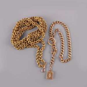 in oro di cui una con pendente portaritratto, gr. complessivi 43,9. Lunghezza 145 cm ca. e 35 cm ca.