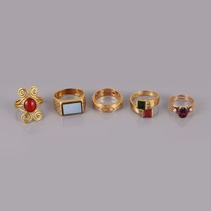 in oro con diamanti taglio a rosa e gemme varie, gr. complessivi 33,9. Misura 11, 16, 18 e 23