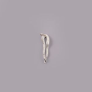 in oro bianco a forma stilizzata con brillanti (uno mancante), gr. 2,6. Lunghezza 3 cm ca. Firmato: Amadomio