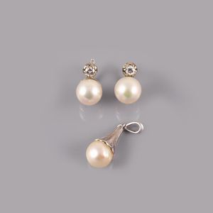 in oro bianco, composto da orecchini con brillanti e perle coltivate e un pendente con perla coltivata, gr. complessivi [..]