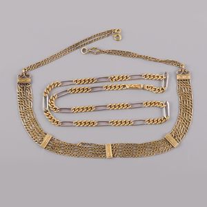 composto da due collane in oro, di cui una a maglie 'groumette' e una composta da molteplici fili di catenelle, [..]
