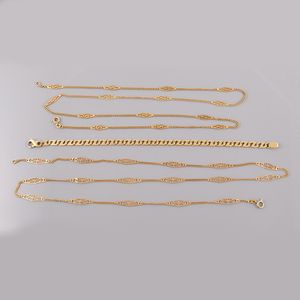 in oro giallo composto da bracciali e due collane, una con moschettone in oro a titolo basso, gr. complessivi [..]
