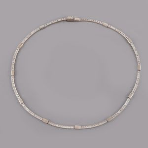 in oro bianco a elementi snodati con pietre sintetiche, gr. 23,5. Lunghezza 40 cm ca.