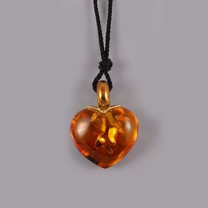 cuore in ambra montato in oro giallo, gr. 10,4. Dimensioni 3,8 x 3 cm ca.