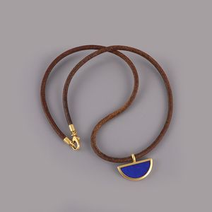 in oro giallo a semiluna con lapislazzuli, gr. 2,4. Sostenuto da girocollo in cuoio con chiusura in oro giallo. [..]