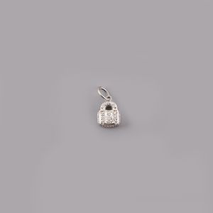 a guisa di lucchetto in oro bianco e brillanti, gr. 2,3. Dimensioni 1,3 x 1 cm ca.