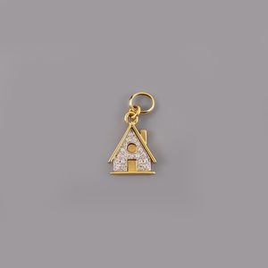 in oro giallo e bianco a guisa di casetta con pavé di diamanti, gr. 5. Dimensioni 2 x 1,5 cm ca.