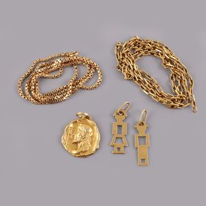in oro giallo, gr. complessivi 48,7. Lunghezza catene 65 cm e 51 cm