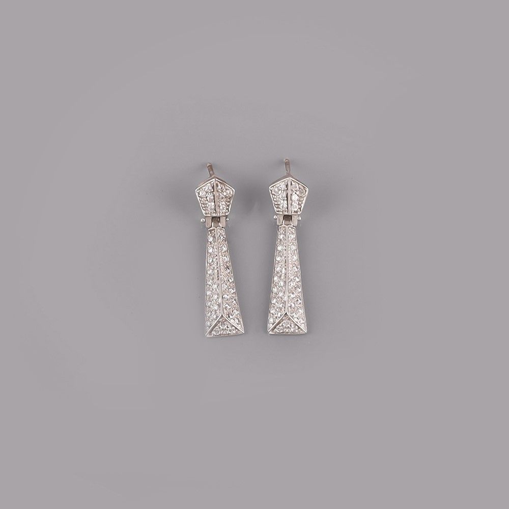pendenti in oro bianco con pietre sintetiche, gr. 8,1. Lunghezza 3,5 cm ca.