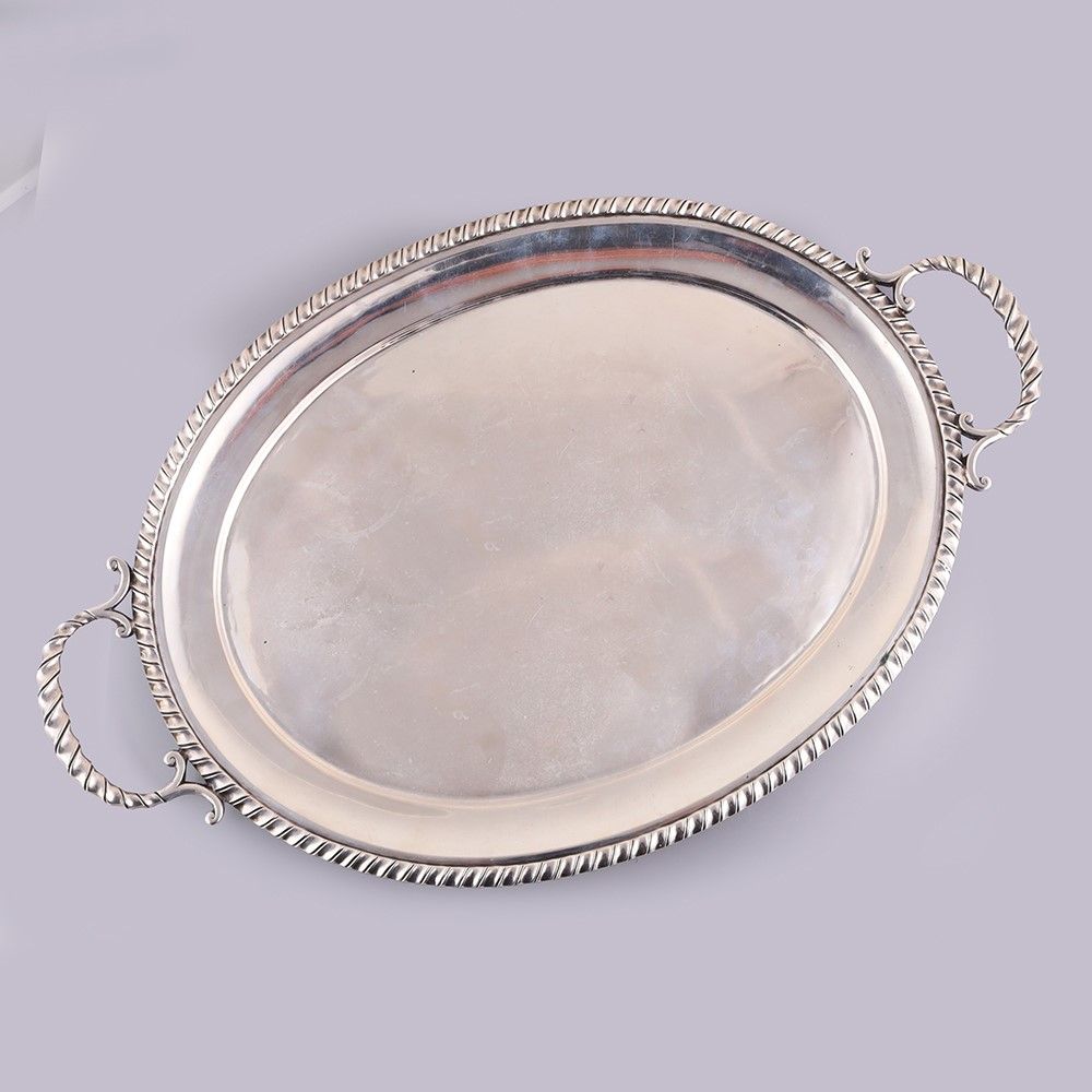 in argento a forma ovale, bordura godronata e manici, gr. 955. Dimensioni 44 x 28 cm Numerario: 1 BS con fascio littorio (Petruzzi e Branca - Brescia)